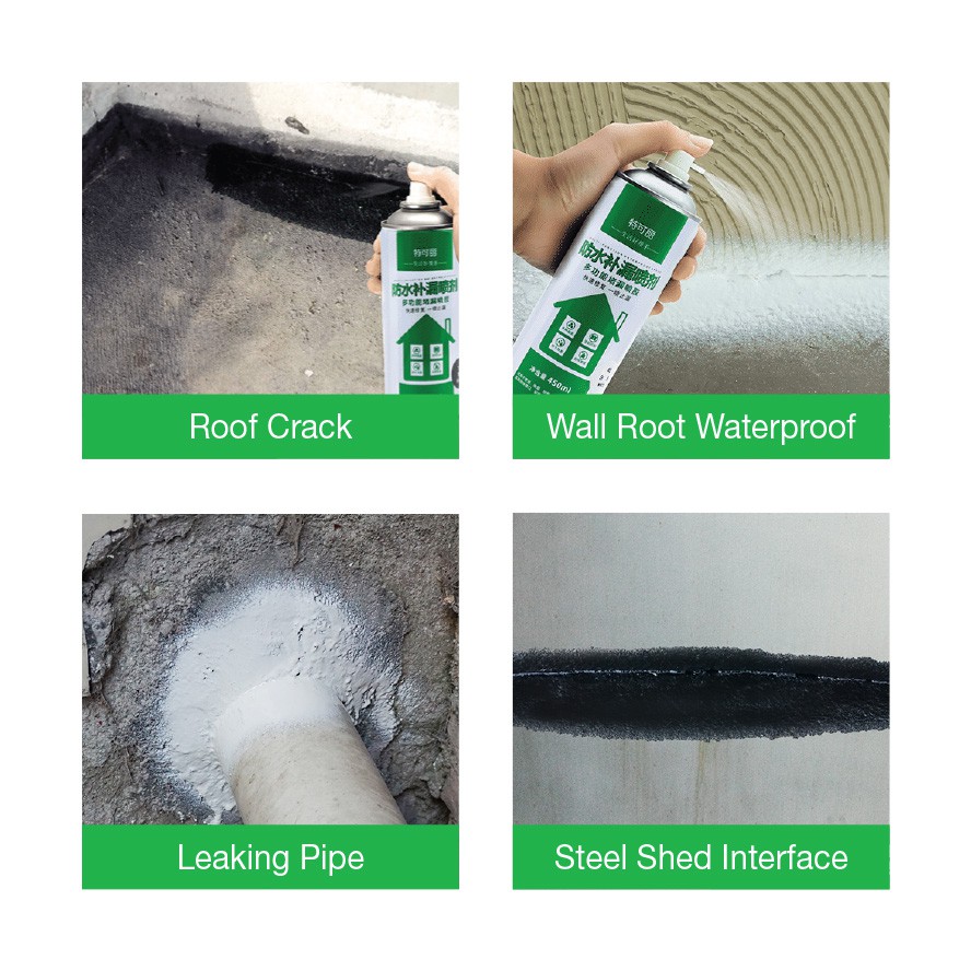 1. Bersihkan segala habuk, debu dipermukaan bocor 2. Goncangkan botol sebelum digunakan, semburkan sama rata pada tapak pembinaan, dan sembur sekali lagi selepas sejam (2 kali semburan disyorkan) 3. Menunggu kering: Masa pengeringan permukaan adalah 20-30 minit, masa keras sepenuhnya adalah kira-kira 24 jam, bergantung pada kata pengawetan sebenar. ISI PADU PRODUK 450 ML